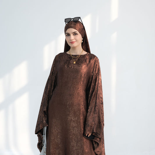 Opaline Butterfly Inner Tie Abaya - Camel Dusk
